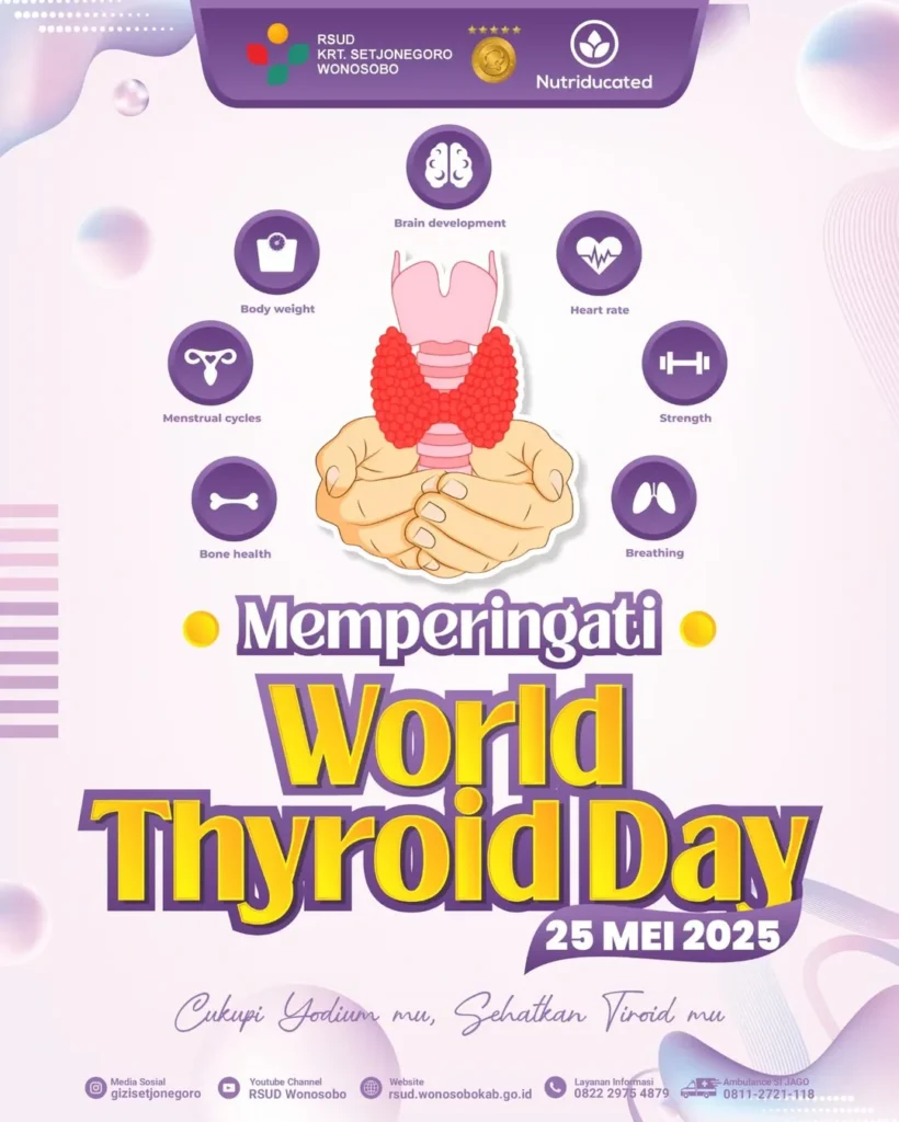 Hallo Sobat Sehat Setjonegoro. Kelenjar tiroid memiliki funsgi utama dalam memproduksi hormon tiroid, yang berperan dalam mengatur metabolisme tubuh, pertumbuhan dan perkembangan. Dua gangguan tiroid yang sering terjadi adalah Hipotiroidisme dan Hipertiroidisme. Yodium merupakan unsur esensial yang dibutuhkan kelenjar tirois untuk memproduksi hormon tiroid seperti Tiroksin (T4) dan Triodotironin (T3). Kekurangan yodium dapat mengakibatkan hipotiroidisme. […]