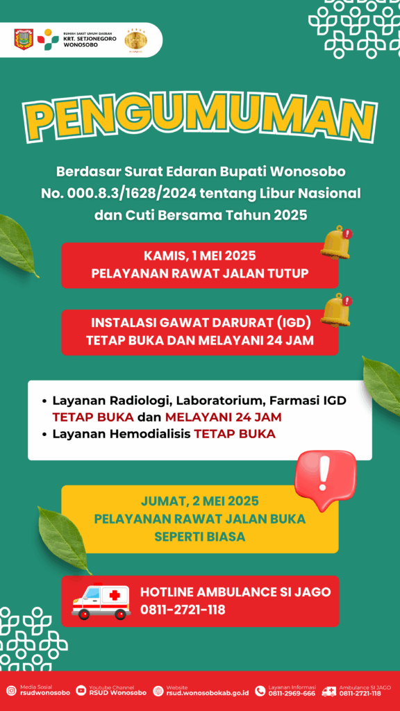 Berdasar Surat Edaran Bupati Wonosobo No. 000.8.3/1628/2024 tentang Libur Nasional dan Cuti Bersama Tahun 2025