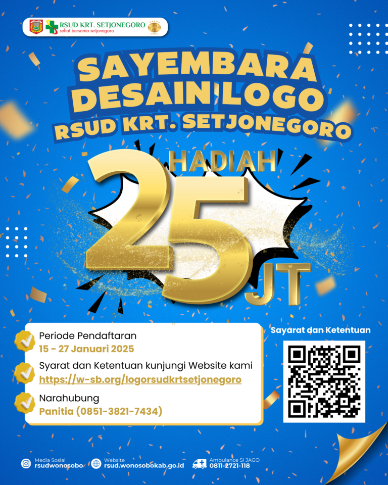 - Mengirimkan usulan berupa logo (logogram) dan Nama RSUD KRT. Setjonegoro (logotype)