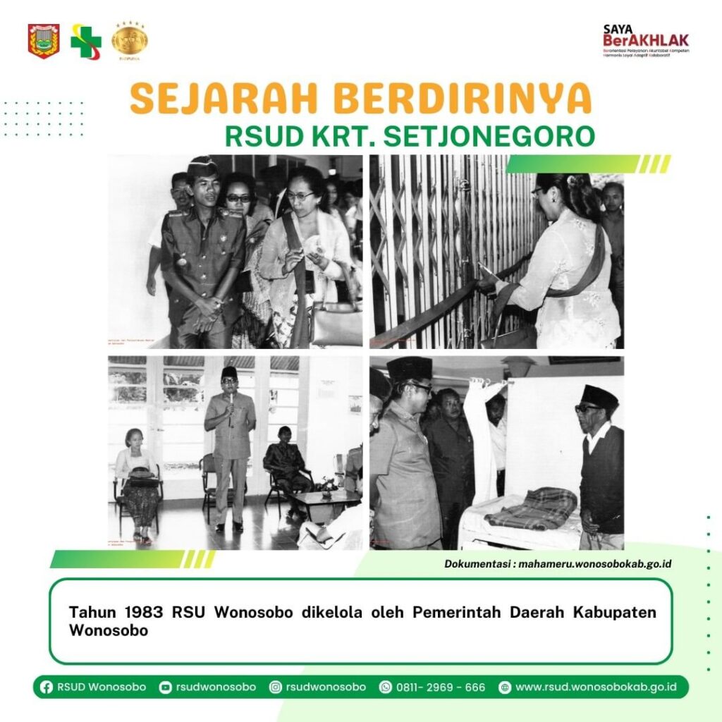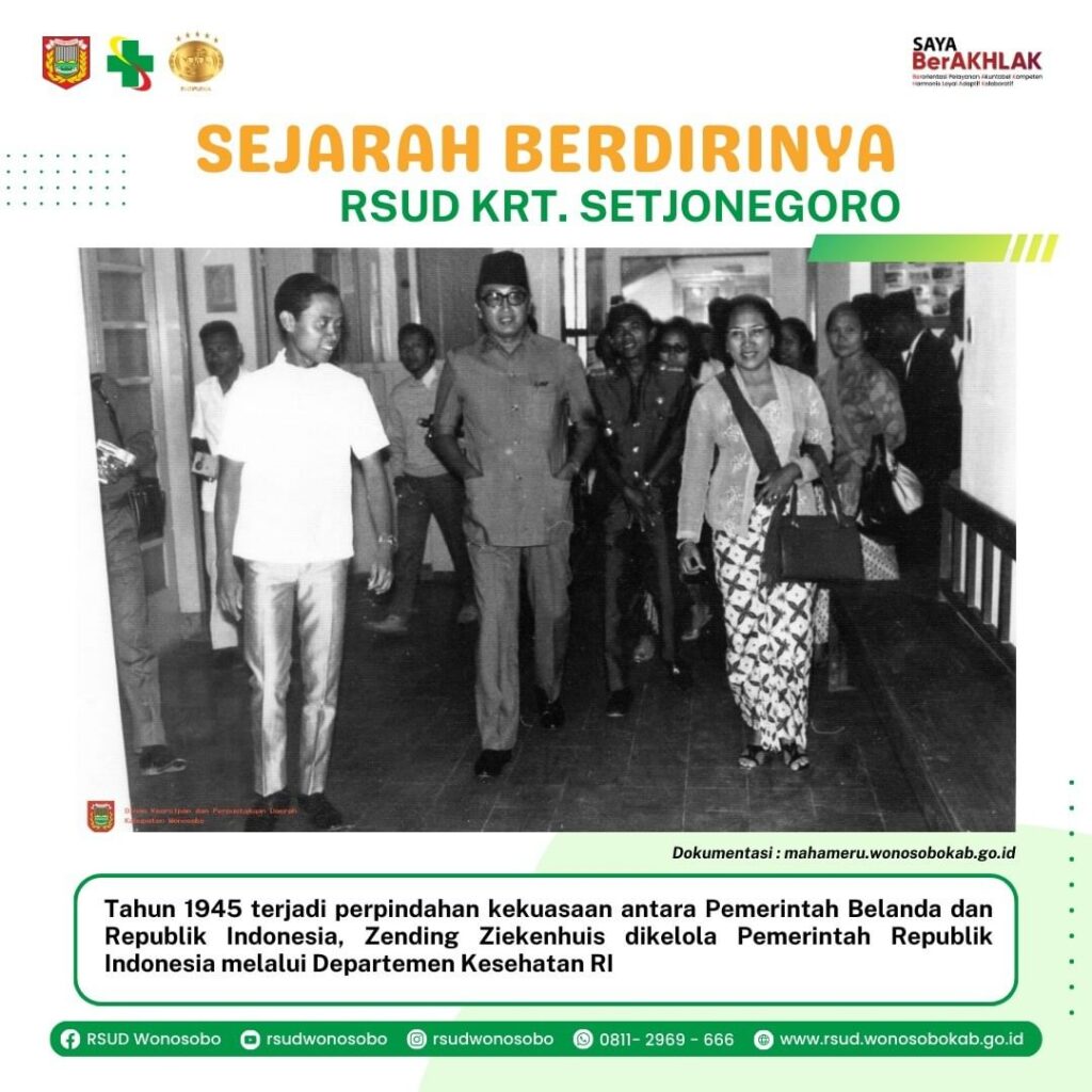 Setelah kemerdekaan Republik Indonesia, pada tahun 1946 sampai dengan 1983 Zending Zienken Huis diserahkan ke Kementrian Kesehatan dan dikelola oleh Provinsi Jawa tengah. Pada tahun 1983 RSU Wonosobo diserahkan kepemilikannya kepada Pemerintah Dearah Kabupaten Wonosobo dan ditetapkan sebagai Rumah Sakit Umum Daerah. Penetapan kelas rumah sakit dalam kelas C melalui Keputusan Bupati Kepala Daerah Tk. II Wonosobo Nomor 061.1/035/1983.